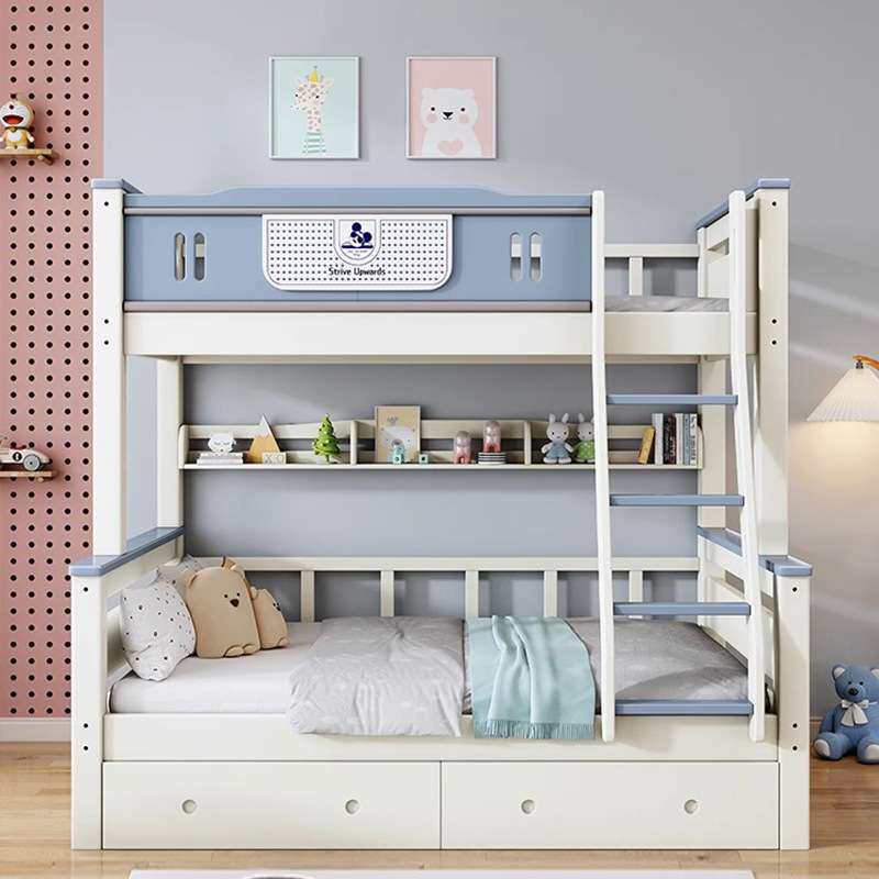 实木子母床儿童上下高低床小户型卧室男女孩双层床高箱多功能组合