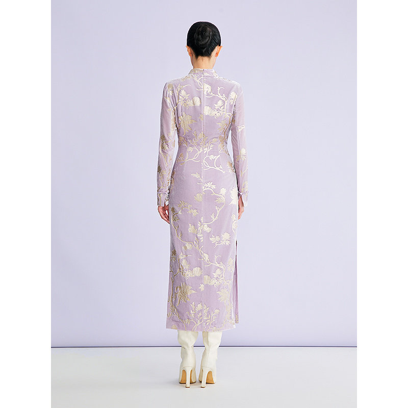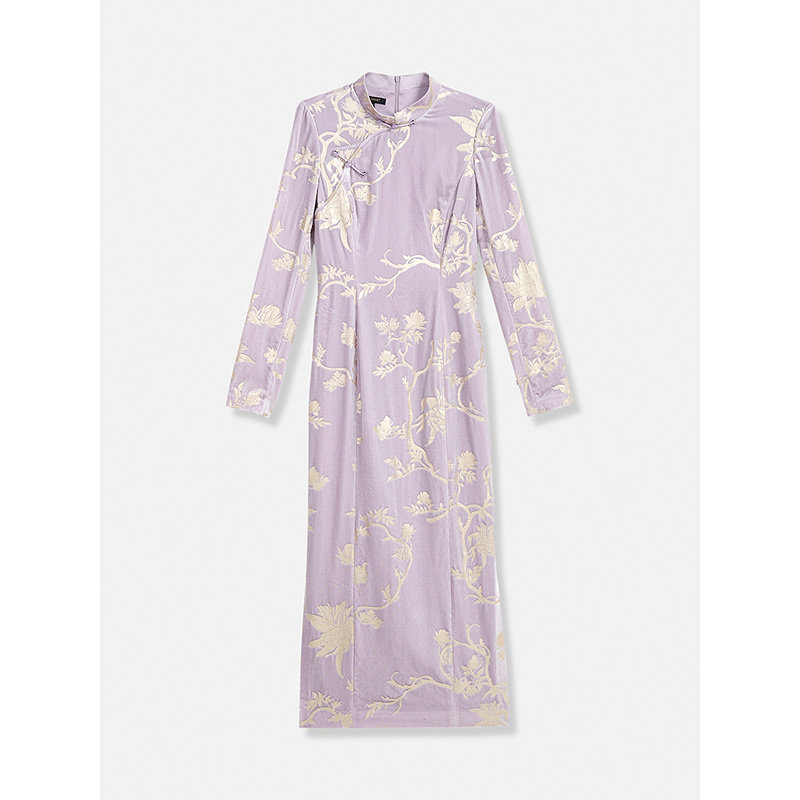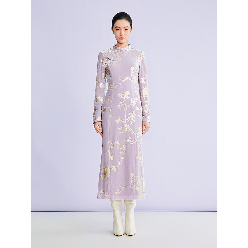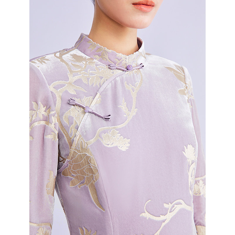 【新中式】YINER音儿2026春季新款亮丝刺绣肌理旗袍领丝绒连衣裙