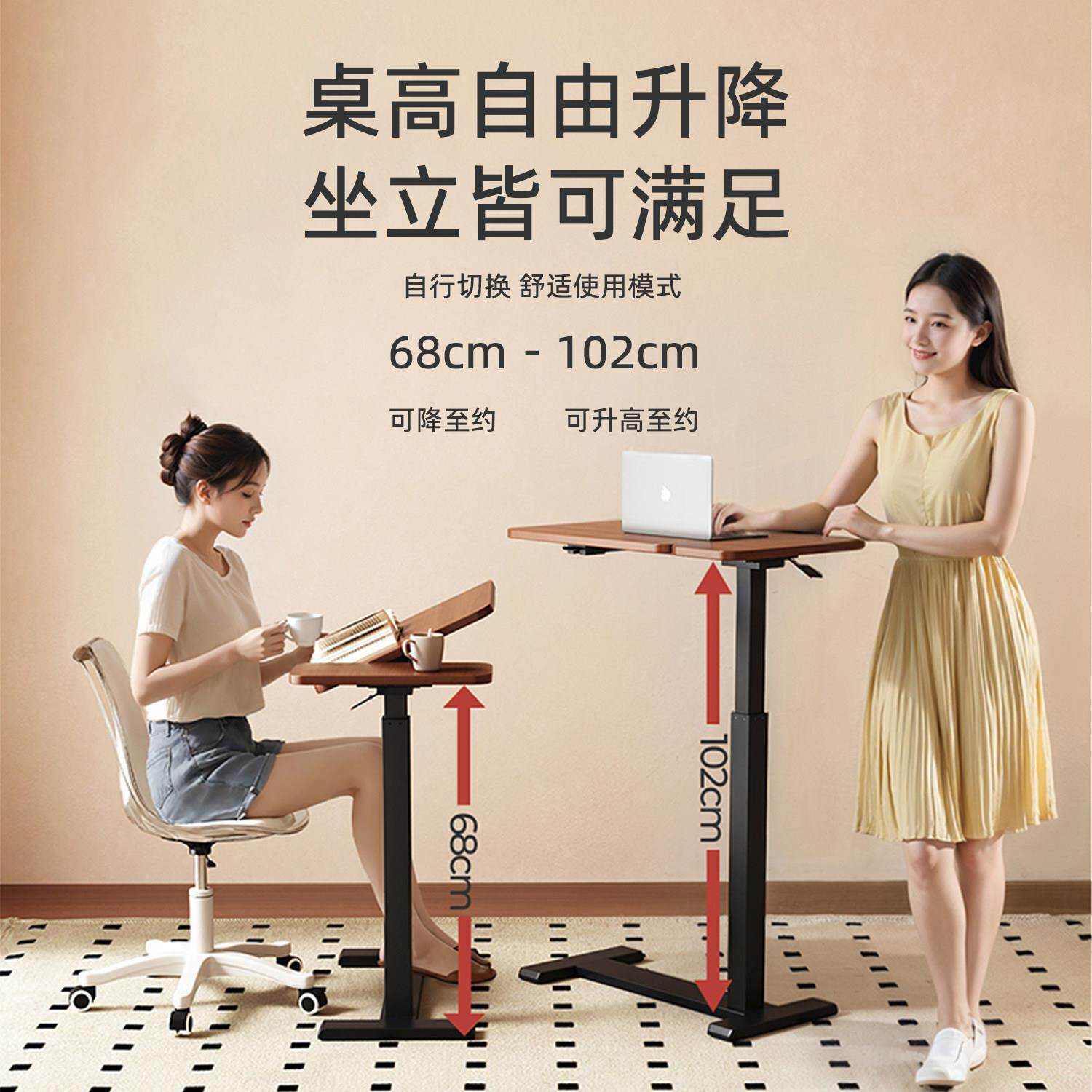 床边桌可升降移动可折叠电脑桌家用客厅小型升降桌沙发小书桌办公