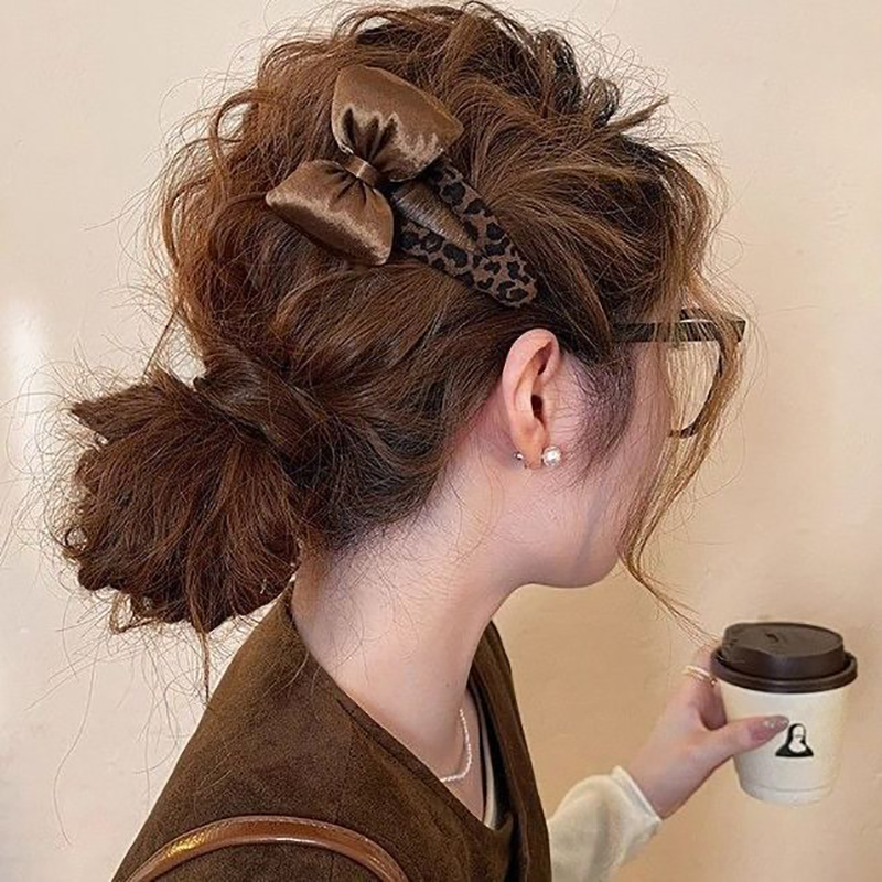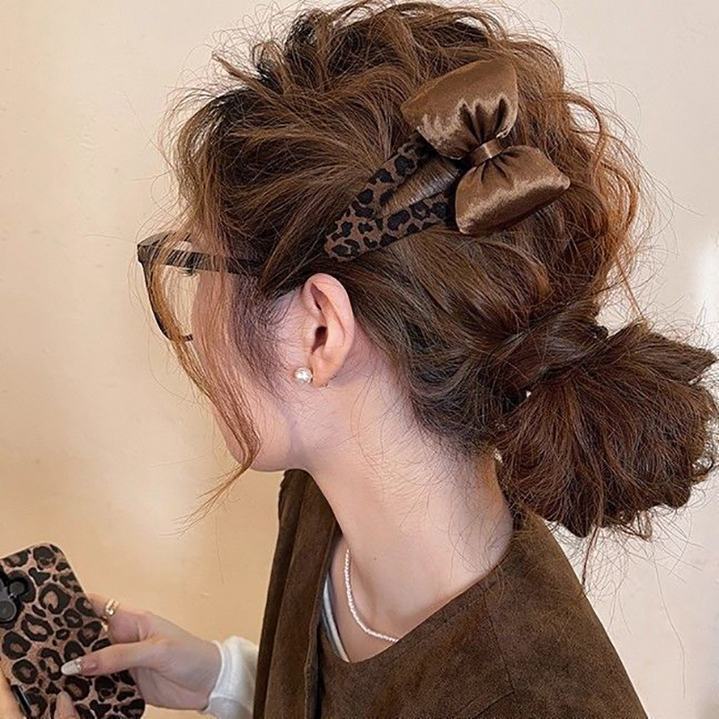 美拉德系丝绒蝴蝶结豹纹发夹边夹侧边发卡前额刘海夹子新款头饰女