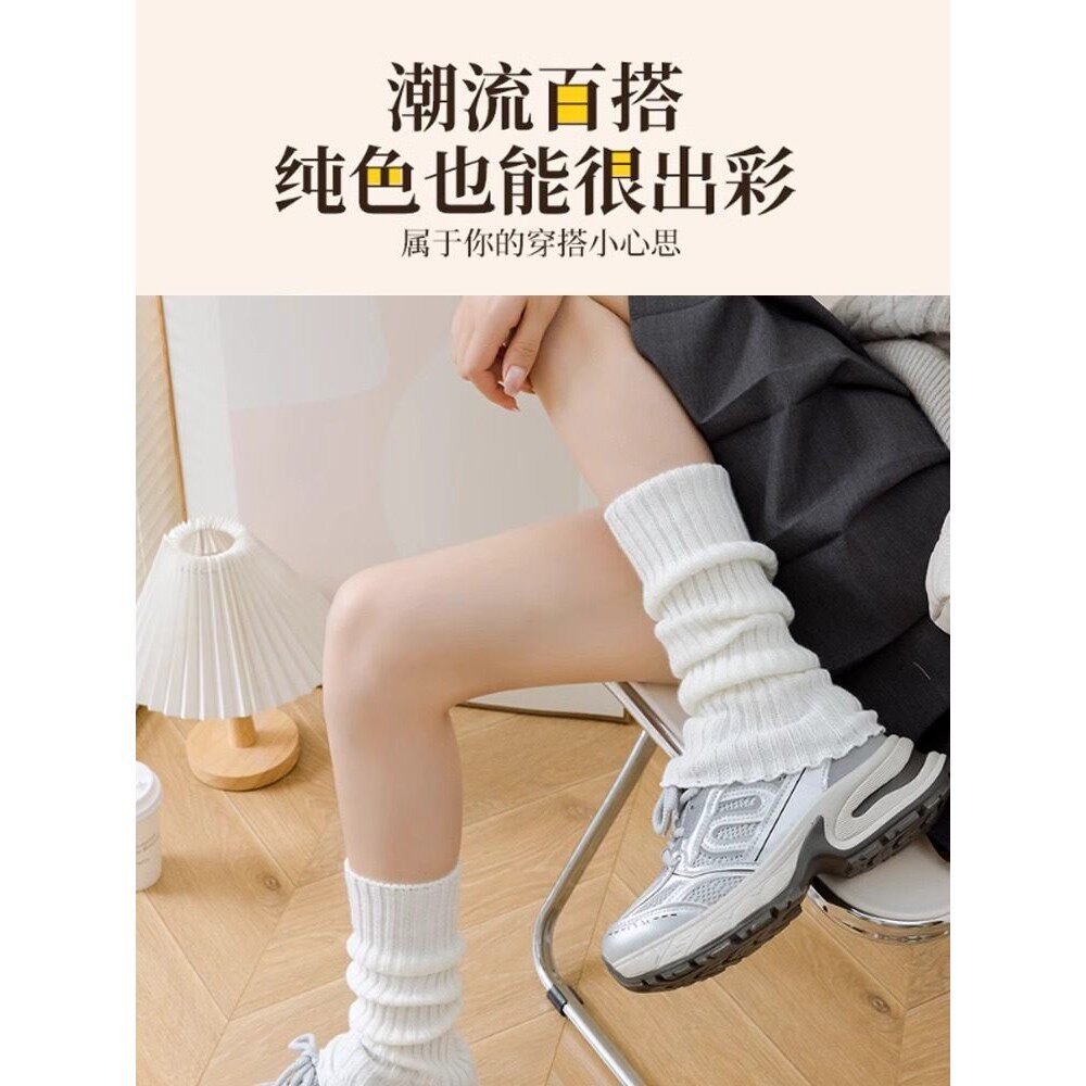 针织jk袜套袜子春秋白色小腿袜套拼接腿套堆堆袜长筒堆堆袜潮流女
