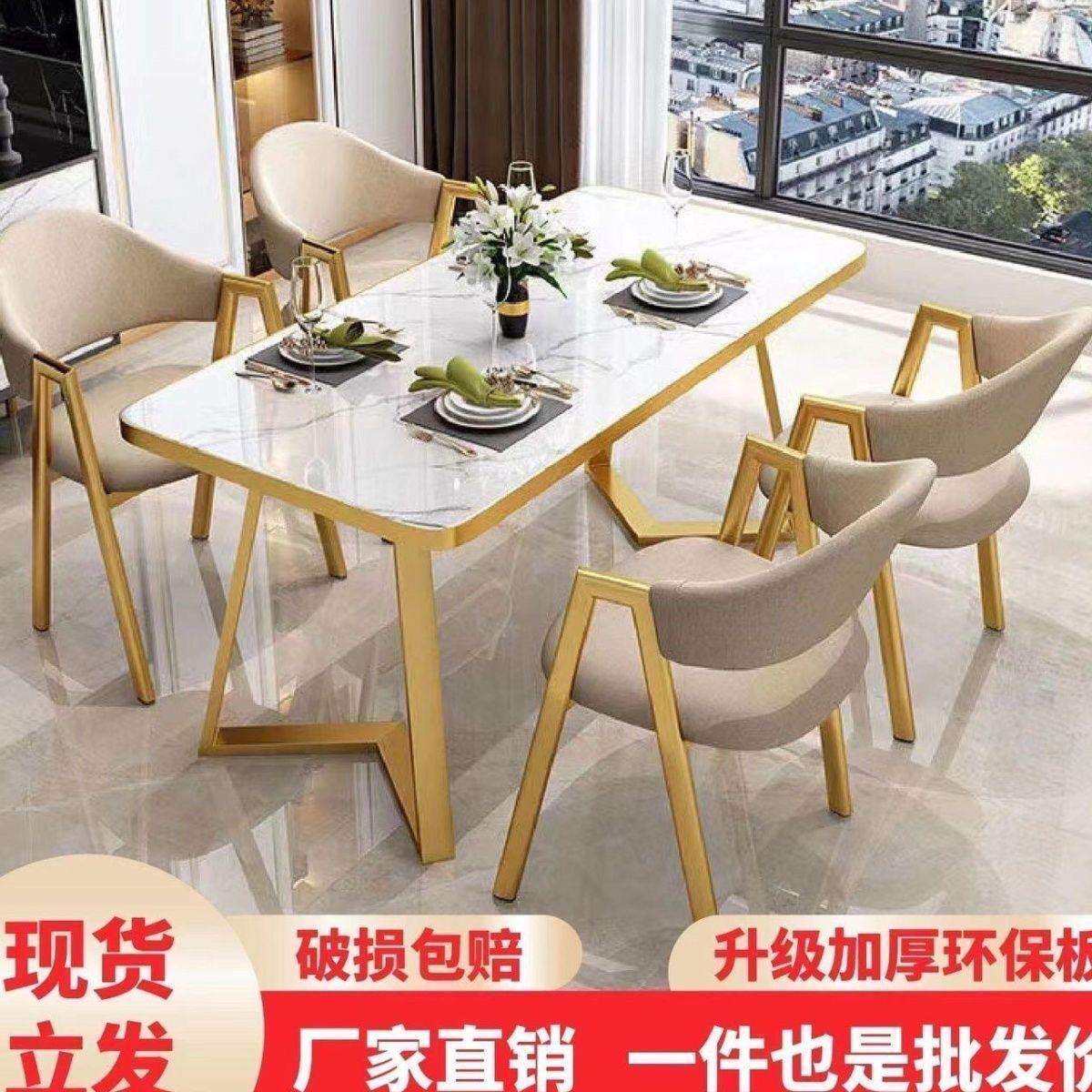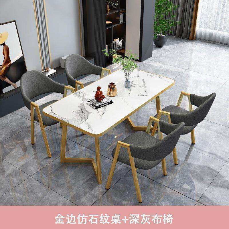 家用餐桌椅组合套装奶茶店接待洽谈桌椅组合仿岩板小户型方桌