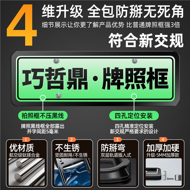 加厚加硬全铝合金车牌照边框架汽车小车号牌照架框牌子保护套框