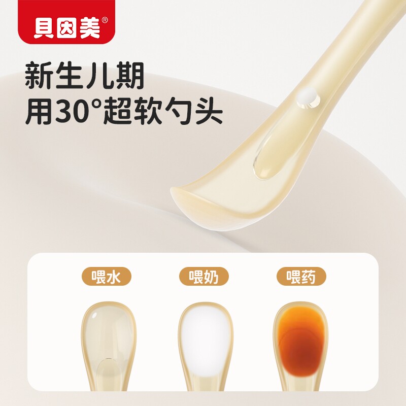 贝因美硅胶勺子新生婴儿辅食勺宝宝吃饭专用小勺子儿童餐具软勺