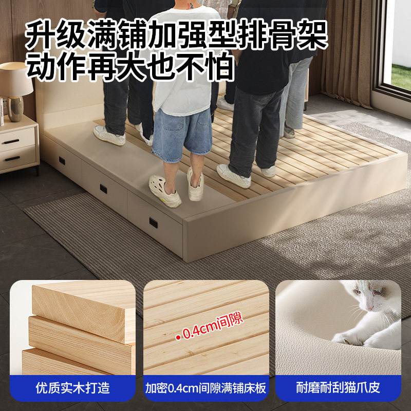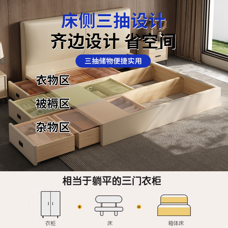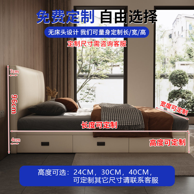 全实木薄床头榻榻米储物床小户型抽屉真皮主卧大床可定制尺寸