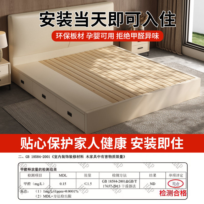 现代简约实木床1.8米主卧双人床1.5M单人经济型高箱储物大床