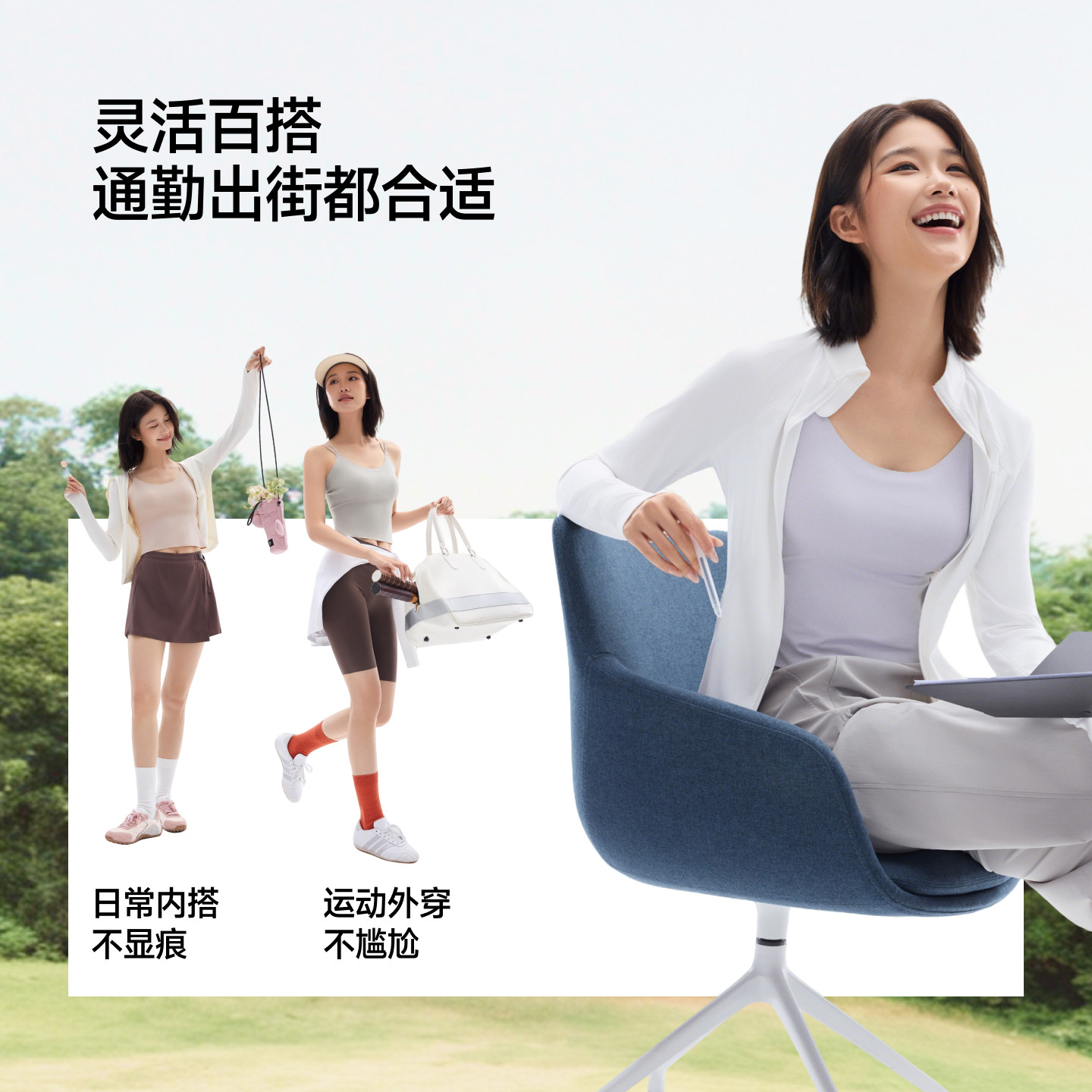 蕉下美背内衣女内搭夏季白色运动打底带胸垫可外穿一体式吊带背心