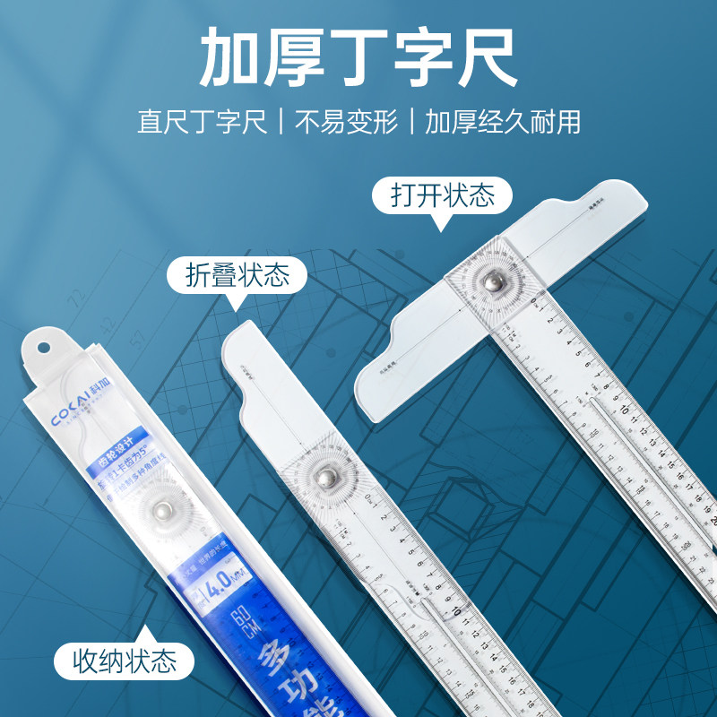 旋转多功能丁字尺制图专用直尺绘图有机t型尺子t字尺60cm长尺小学生文具土木机械工程多功能玻璃尺
