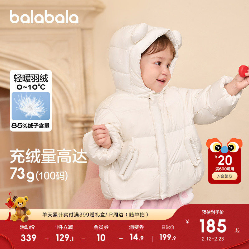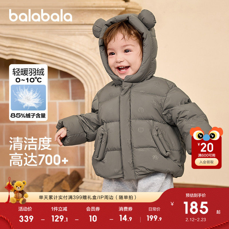 巴拉巴拉童装宝宝羽绒服冬婴儿短款连帽外套儿童连帽保暖舒适上衣