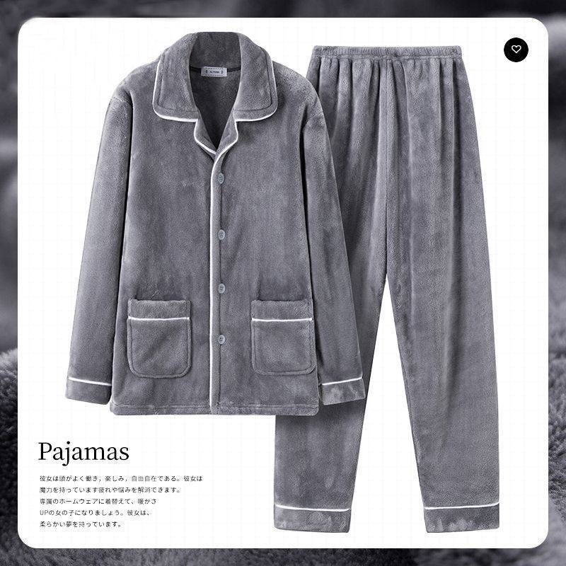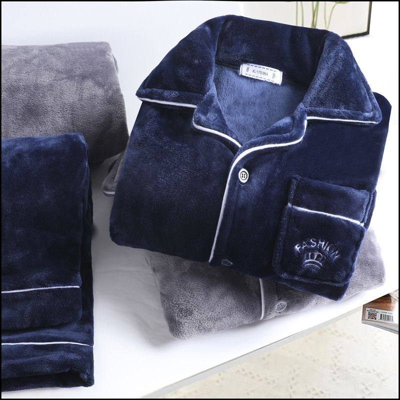 秋冬季男士珊瑚绒睡衣加厚加绒保暖可外穿法兰绒家居服套装厚实