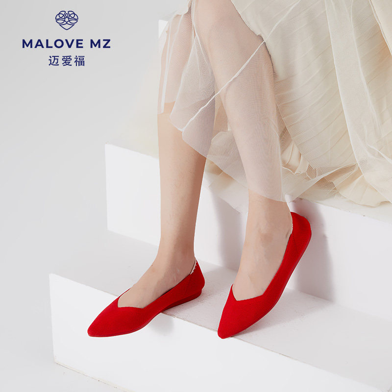 MALOVE MZ王妃鞋2026新款编织通勤工作鞋职业舒适尖头平底单鞋女