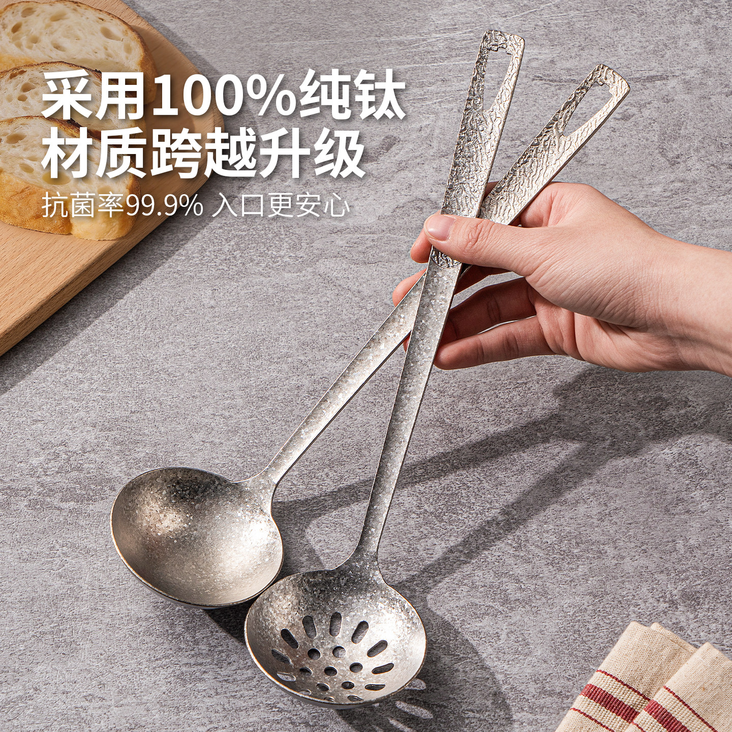纯钛汤勺大号盛汤长柄钛勺火锅专用漏勺食品级汤勺子家用高档精致