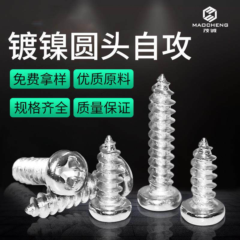 PA镀镍铁圆头螺丝十字自攻螺丝盘头自攻丝微型小螺丝钉M1/M1.8