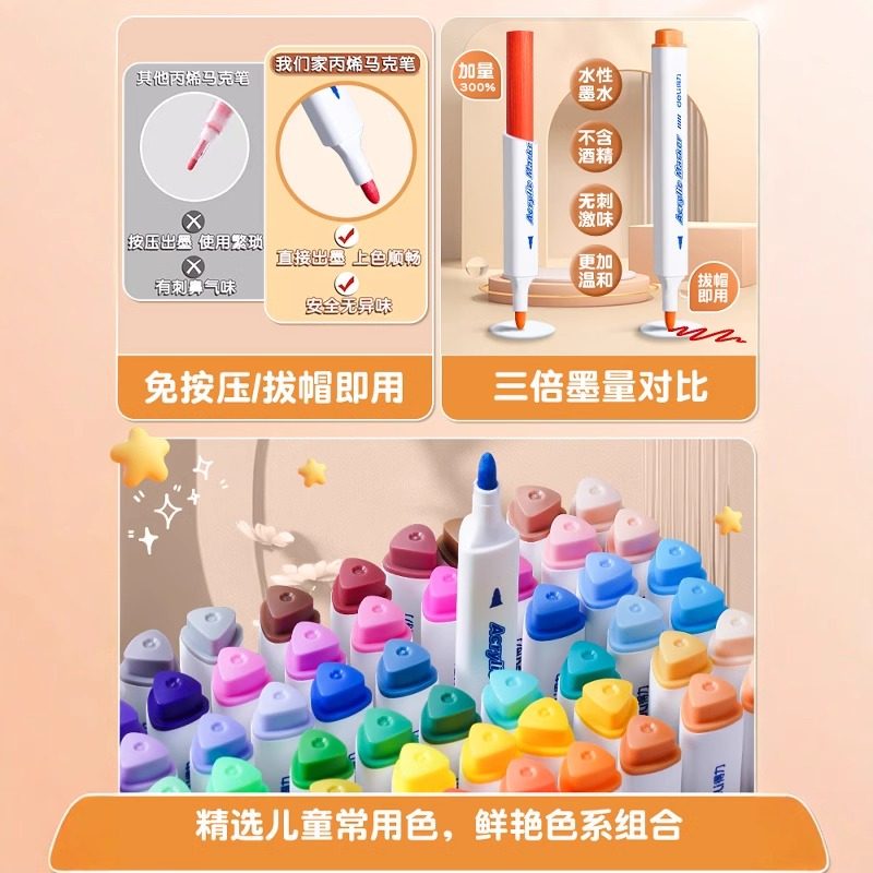 儿童丙烯马克笔水彩笔48色小学生美术专用不透色可叠色可水洗无毒