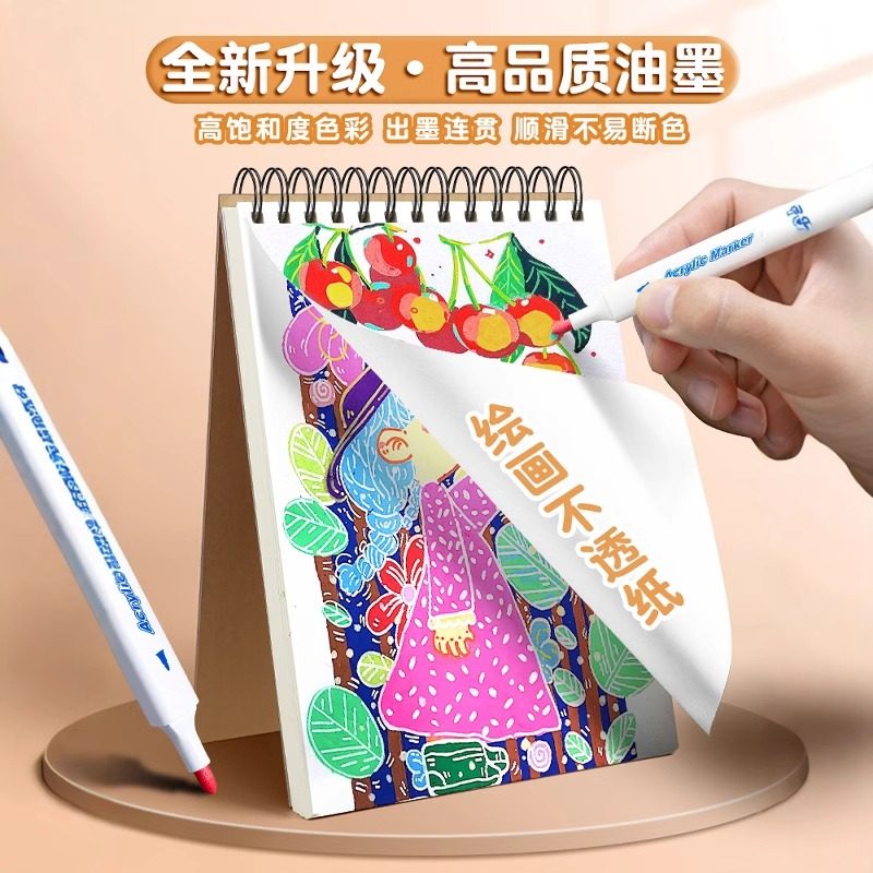 直液式丙烯马克笔软头小学生美术专用水彩笔儿童颜色笔可水洗24色画笔不透色48绘画可叠色彩色笔36水性丙烯笔