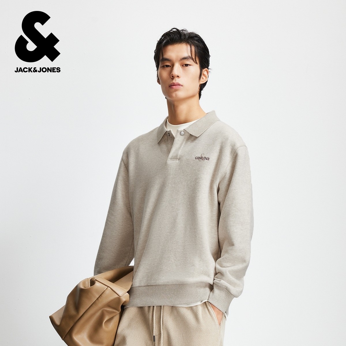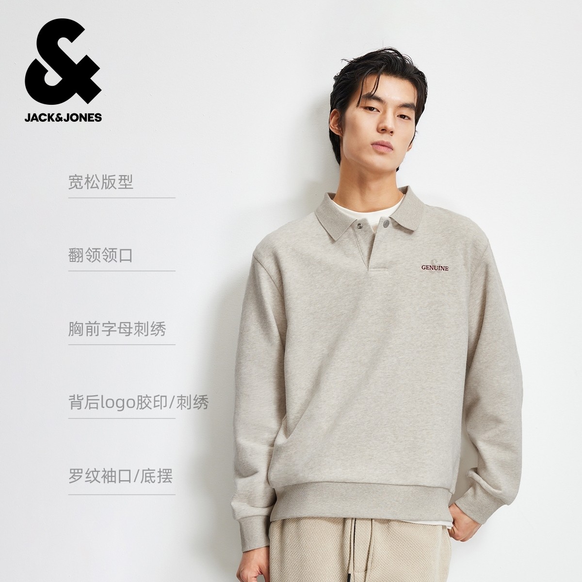 杰克琼斯男装春季卫衣上衣百搭时尚刺绣宽松休闲薄绒翻领长袖宽松