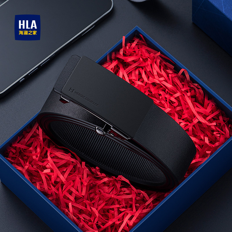 海澜之家真牛皮自动扣腰带男士无牙皮带年轻人裤带商务2025新款潮