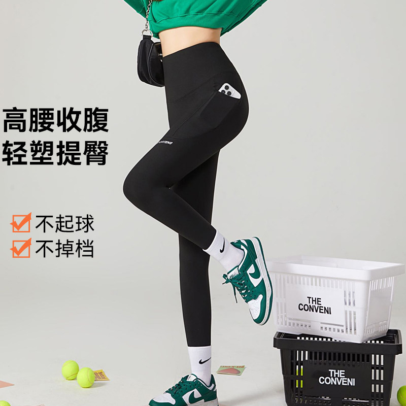 NOME(服饰)新款亲肤透气舒适透气无勒痕塑形口袋手机九分芭比裤