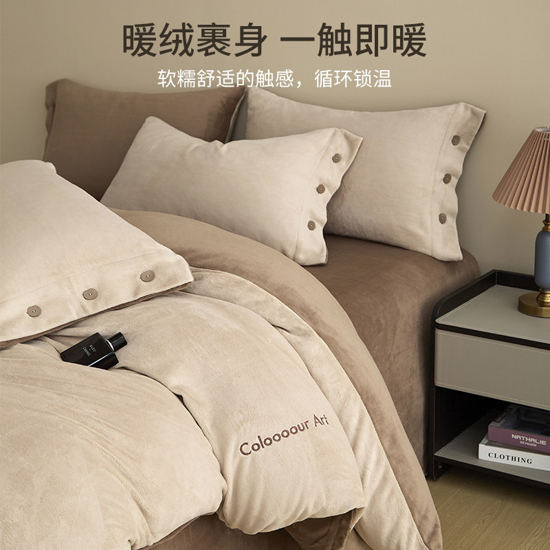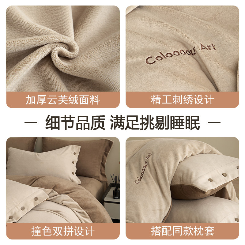 轻奢云芙绒床上四件套珊瑚牛奶绒冬季加厚高级感双面加绒被套床单