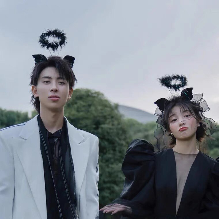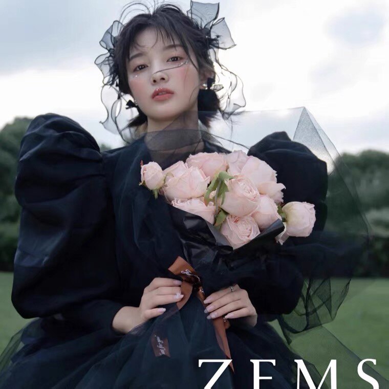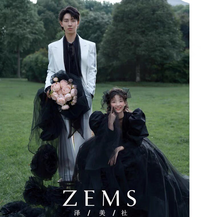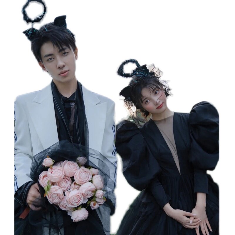 新婚纱摄影外景旅拍黑色主题拍摄道具头纱天使翅膀发箍粉色手捧花