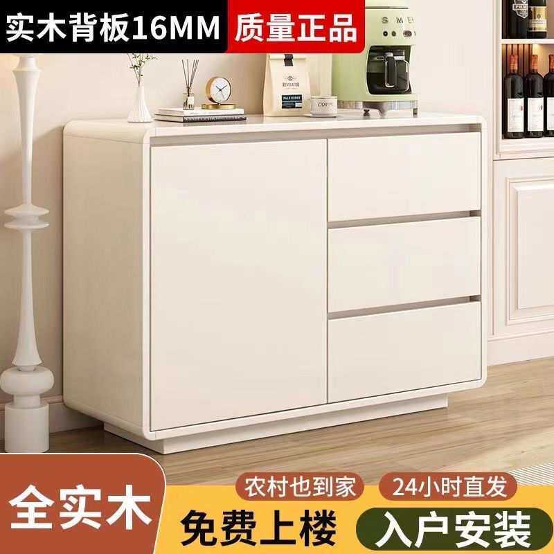 实木餐边柜家用客厅靠墙一体加厚储物柜简约奶油风可订储物斗柜子