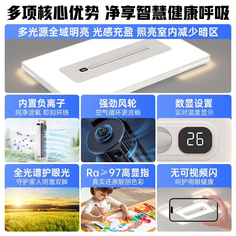 长城灯具客厅灯无叶风扇灯普瑞光护眼吸顶灯电扇一体灯具全屋套餐
