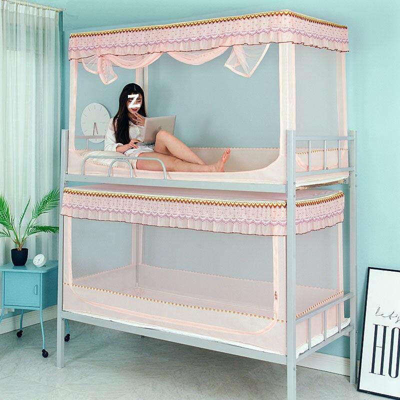 蚊帐学生宿舍上下铺三开门拉链带支架男女寝室0.9米1.2m1.0单遮光