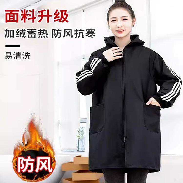 冬季加绒罩衣大人加厚长袖围裙防水韩版女时尚外套家用工作服定制
