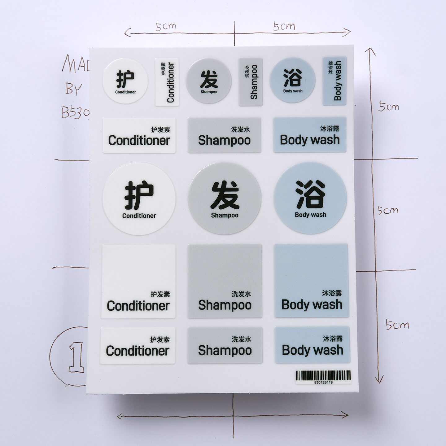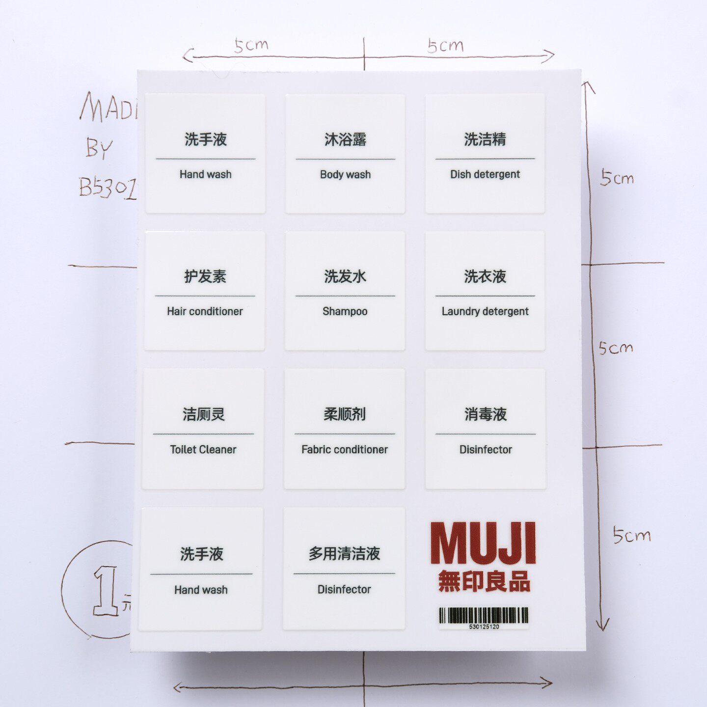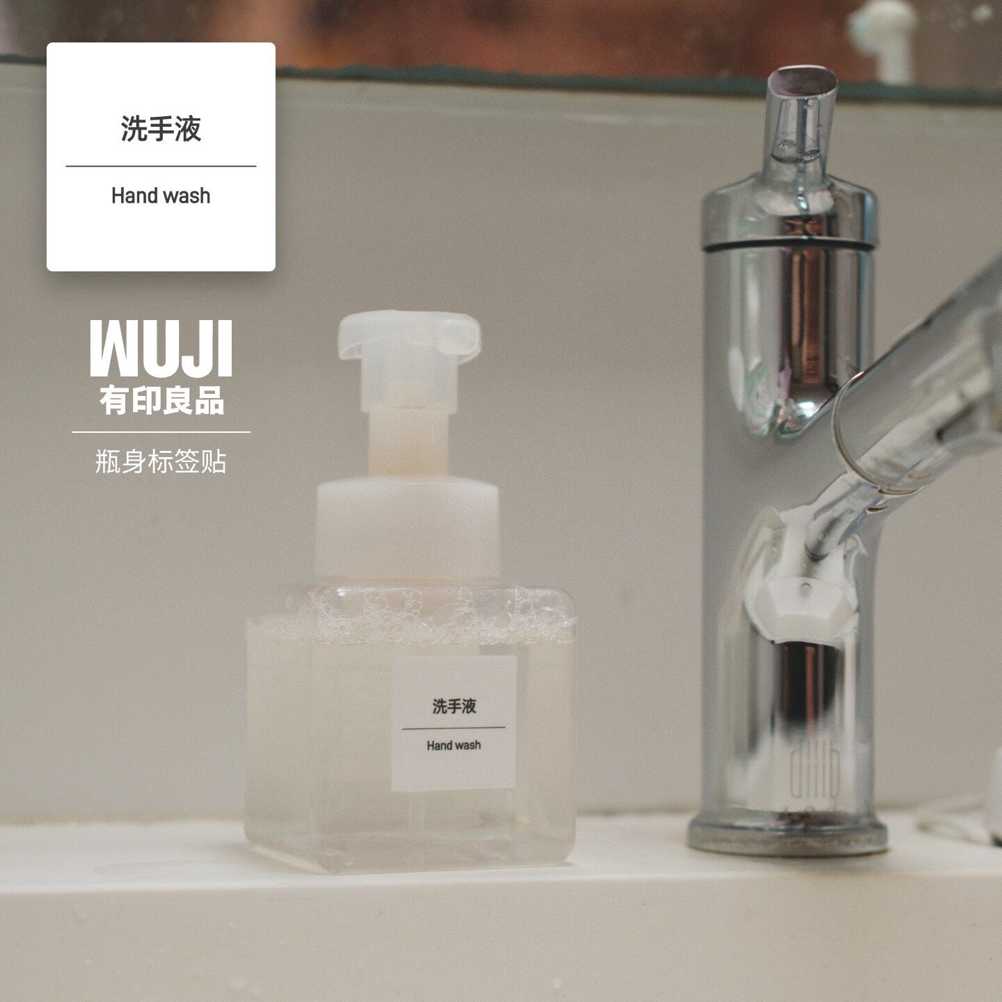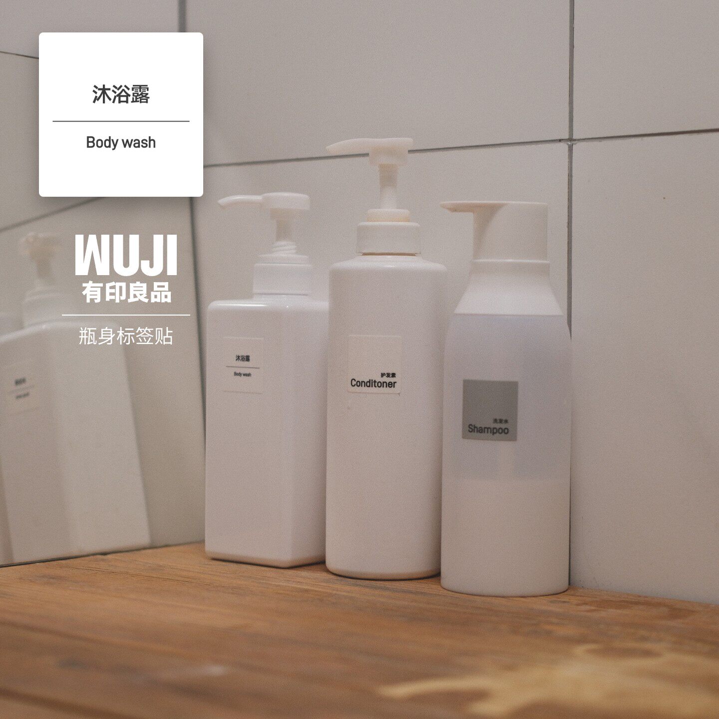 B5301简约muji风洗护三件套卫生间厨房瓶子标签贴防水转印贴纸