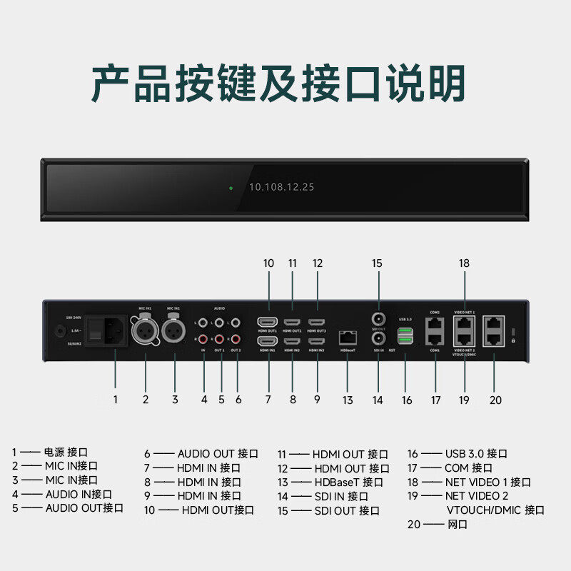 戴浦(DAIPU)4K视频会议分体式终端SIP/H.323视频会议DP-T20C Pro可内置MCU兼容中科兴华达为