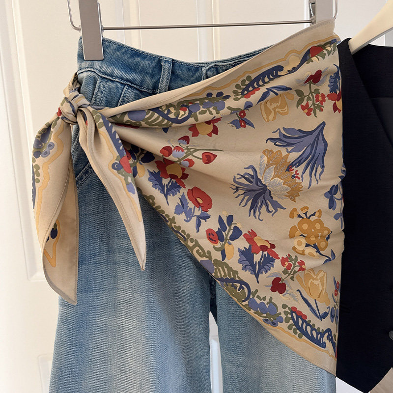 高级感丝巾女小围巾女春秋季棉麻手感脖子围脖小方巾新款日系优雅