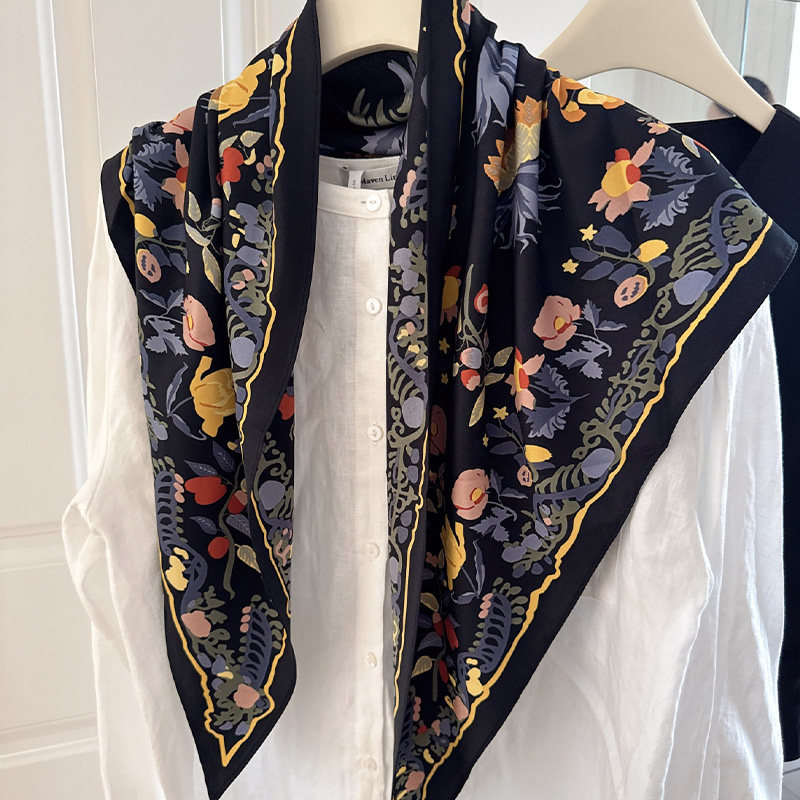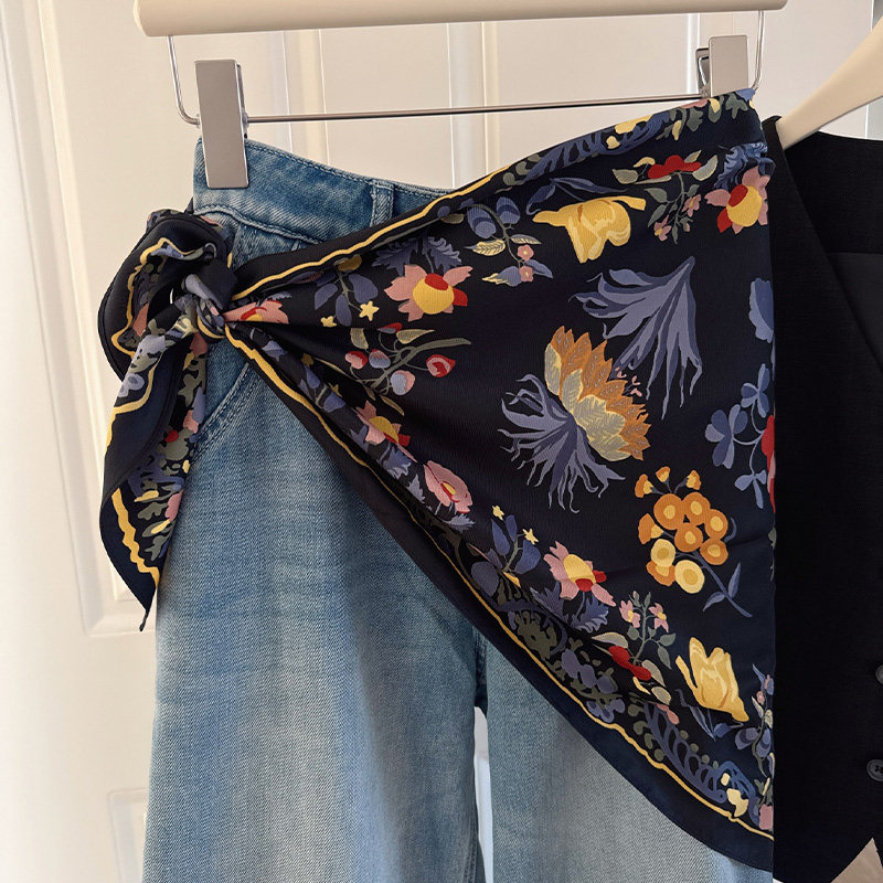 2025新款包头巾女秋冬时尚百搭装饰三角巾领巾围巾绑腰上搭配黑色