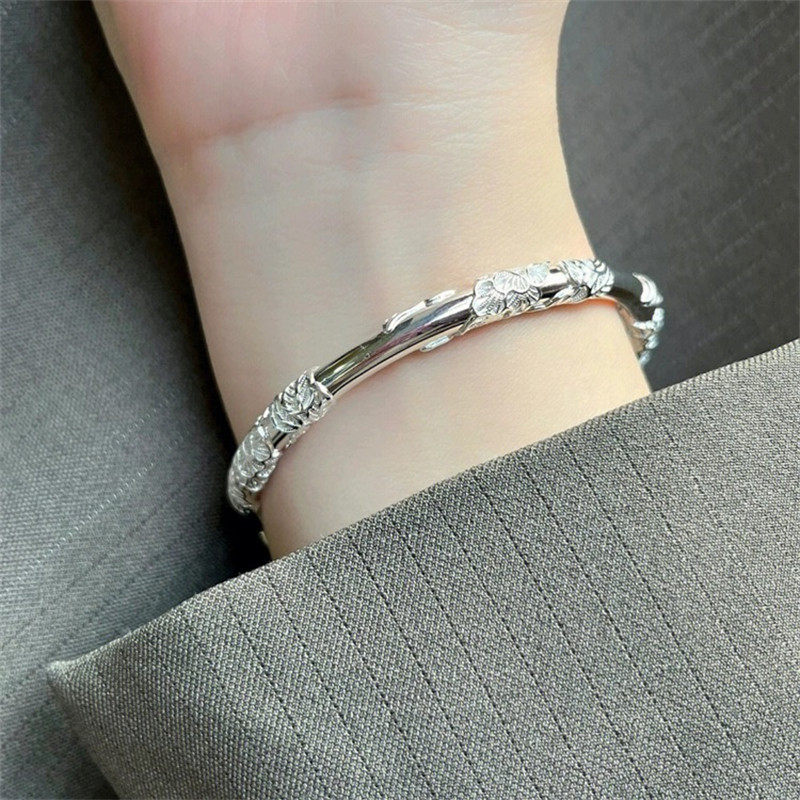 幂琳繁花银手镯女纯银s999足银实心镯子年轻款银饰手链新款满天星