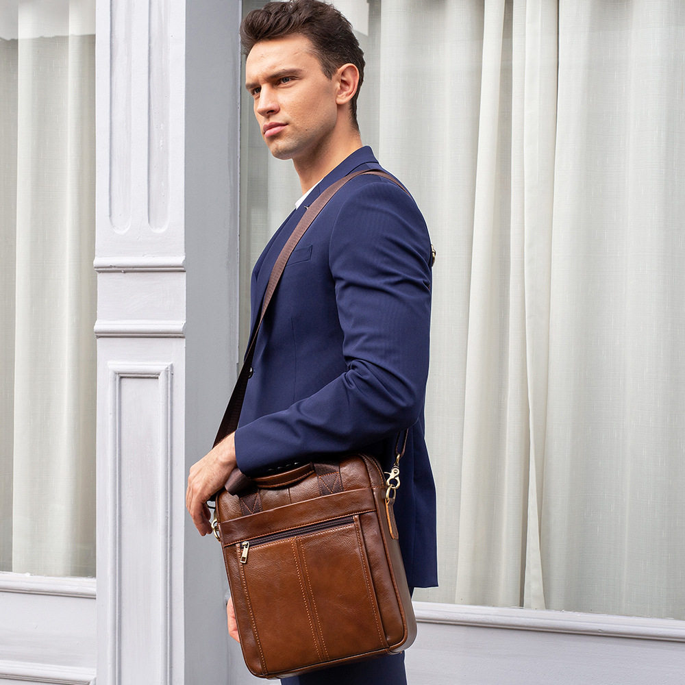 marrant头层牛皮男包商务竖款手提公文包 ipad复古单肩挎包现货