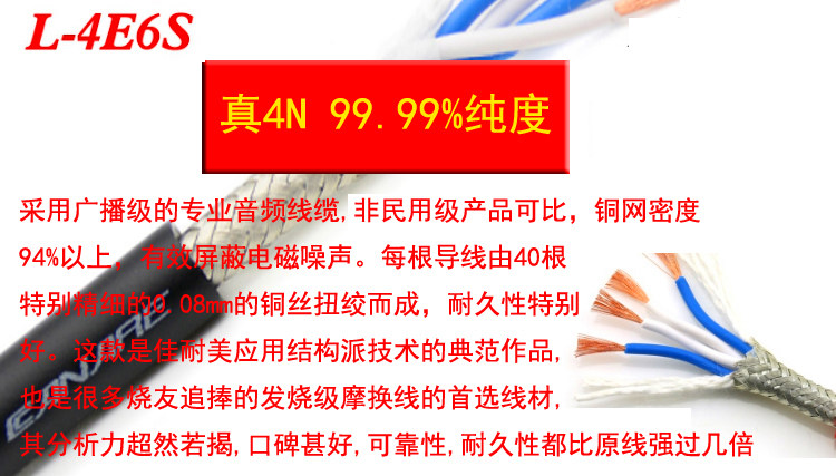发烧音频线 4N 4芯无氧铜 日本佳耐美 双莲花RCA音频信号线