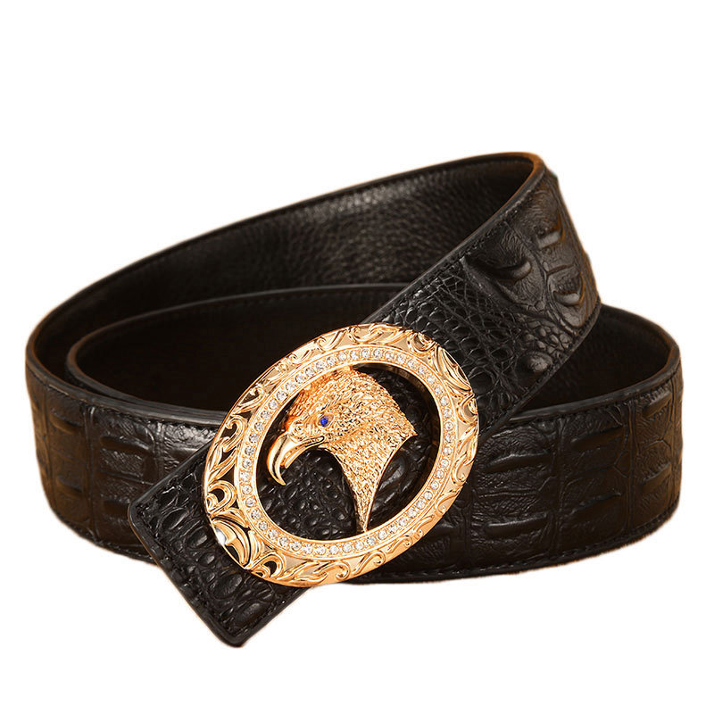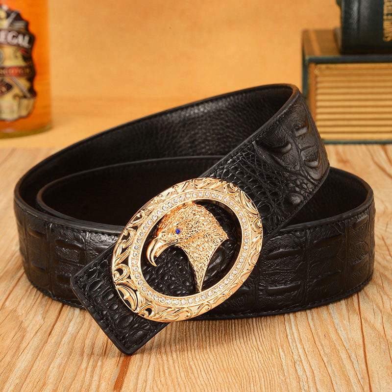 男士皮带中青年皮带潮休闲真皮裤腰封带鳄鱼纹纯牛皮平滑扣送礼盒