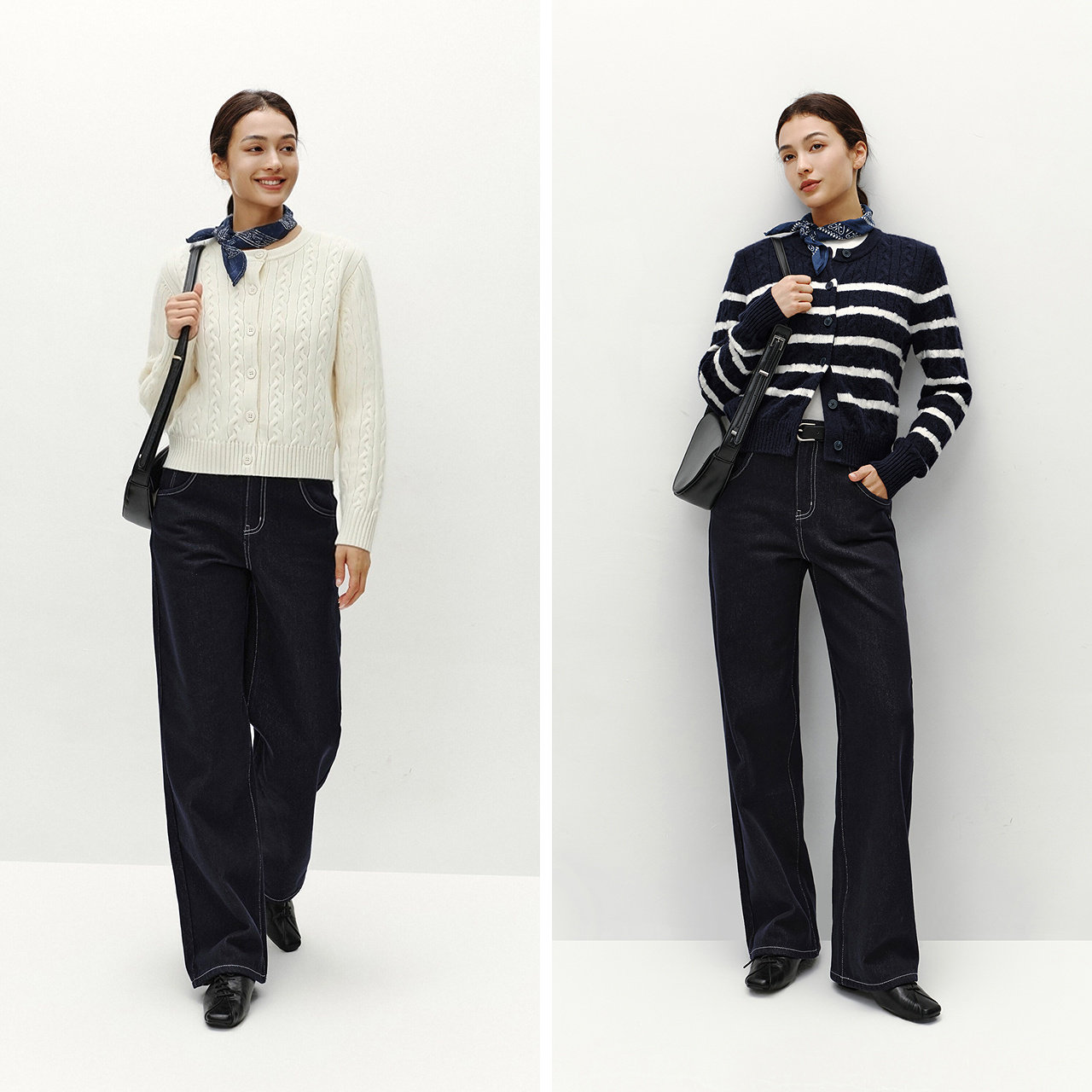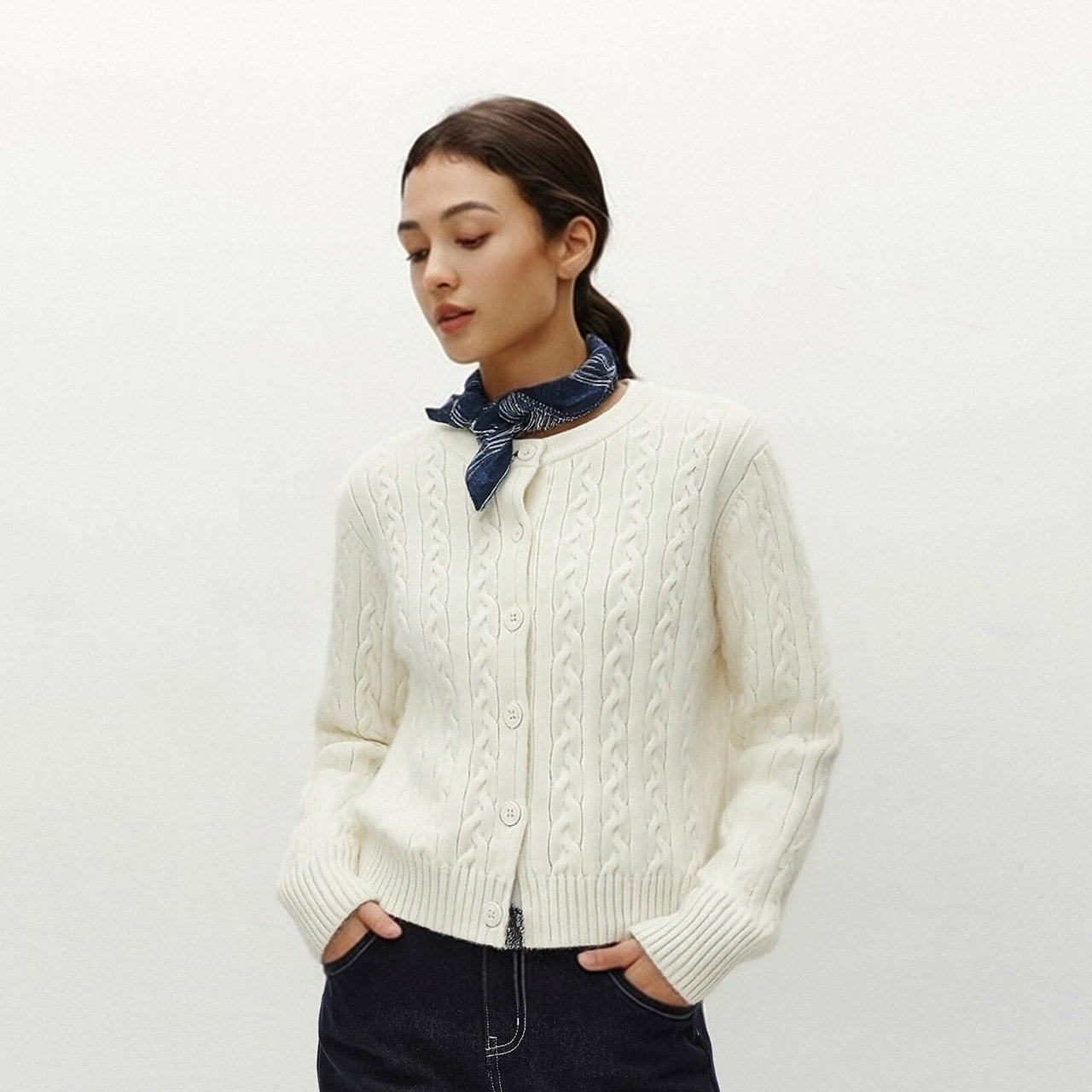 森柔|森马针织开衫女冬季短款绞花肌理圆领毛衫百搭叠穿打底上衣