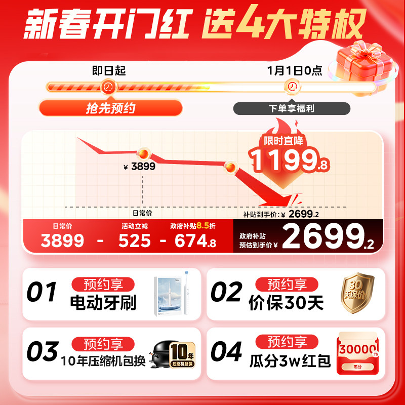 美的283三开门电冰箱一级能效家用变频风冷无霜小型超薄官方租房