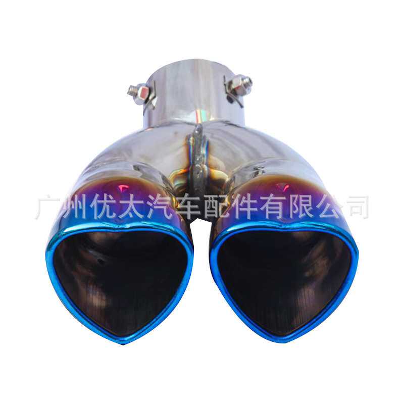 源头厂家 汽车改装尾喉63mm爱心尾喉一出二双管心形排气管加厚