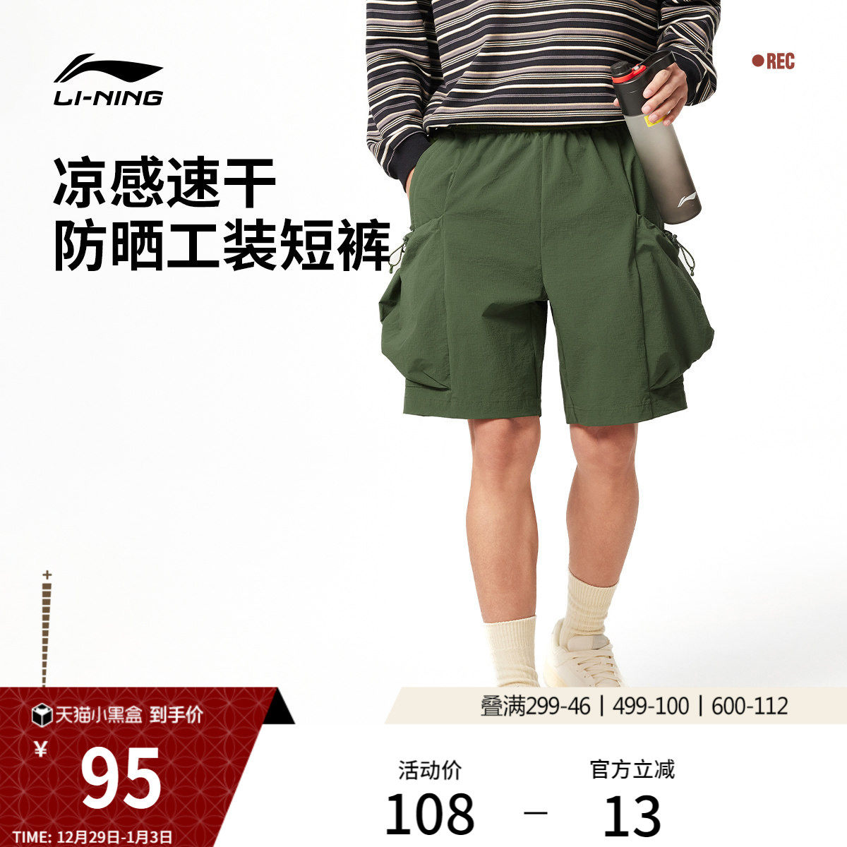 李宁运动短裤男士夏季新款运动生活工装裤宽松休闲冰丝梭织运动裤