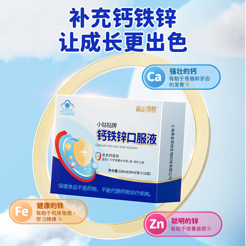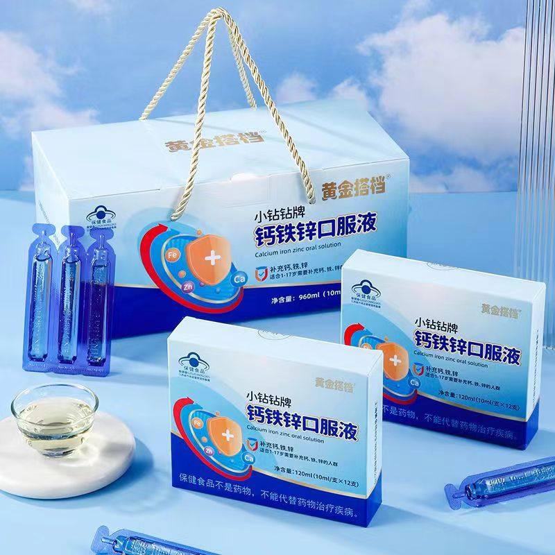 黄金搭档钙铁锌口服液96支儿童青少年学生补钙补锌高钙正品礼盒装
