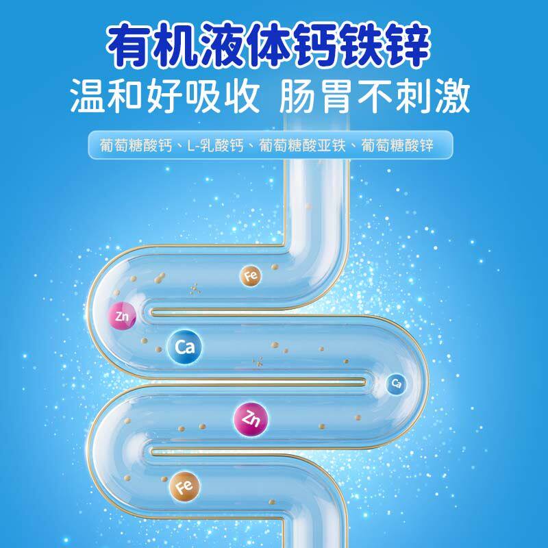 黄金搭档儿童钙铁锌口服液液体钙补钙葡萄糖酸钙非赖氨酸镁口服液