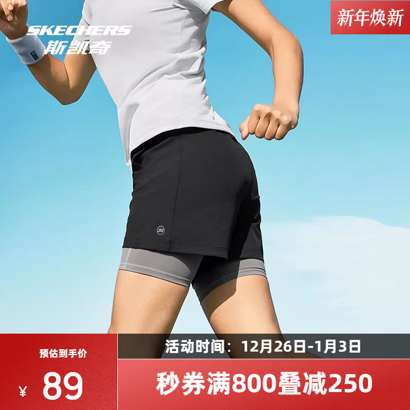 斯凯奇2025新品女子速干梭织运动短裤科技吸湿速干