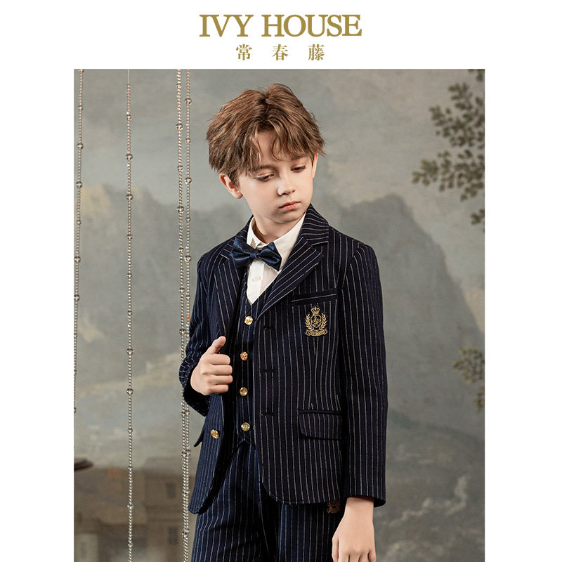 IVY HOUSE常春藤儿童装男童秋季款 条纹西服马甲外套西裤套装亲子