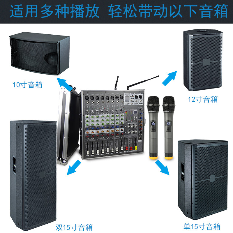 专业4路6路小型调音台带功放无线话筒一体机大功率 家用KTV套装