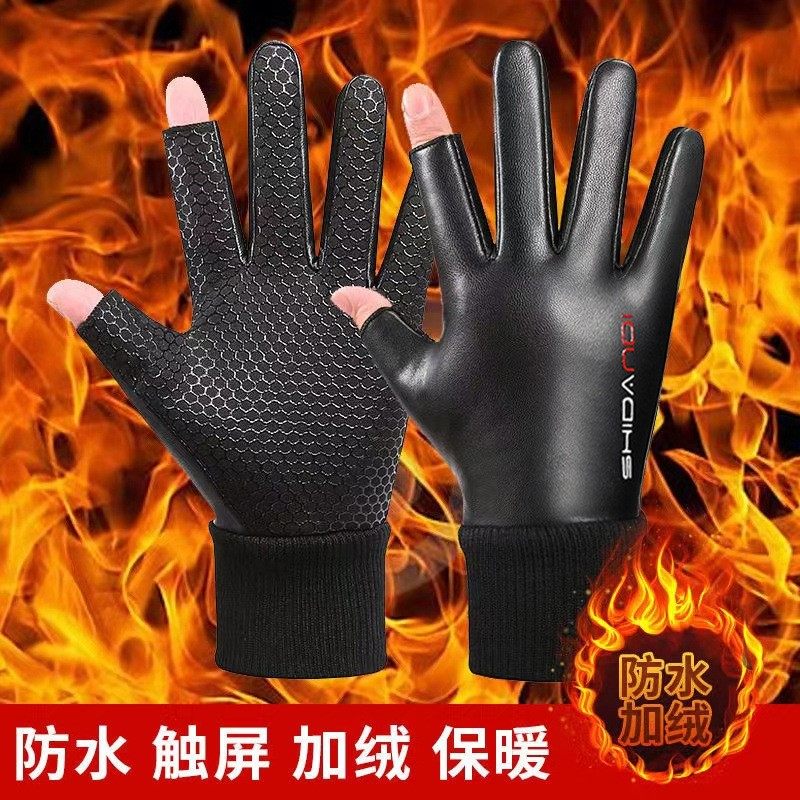 骑手手套男冬季美团送外卖专用加绒保暖冬天骑车防水送快递漏两指