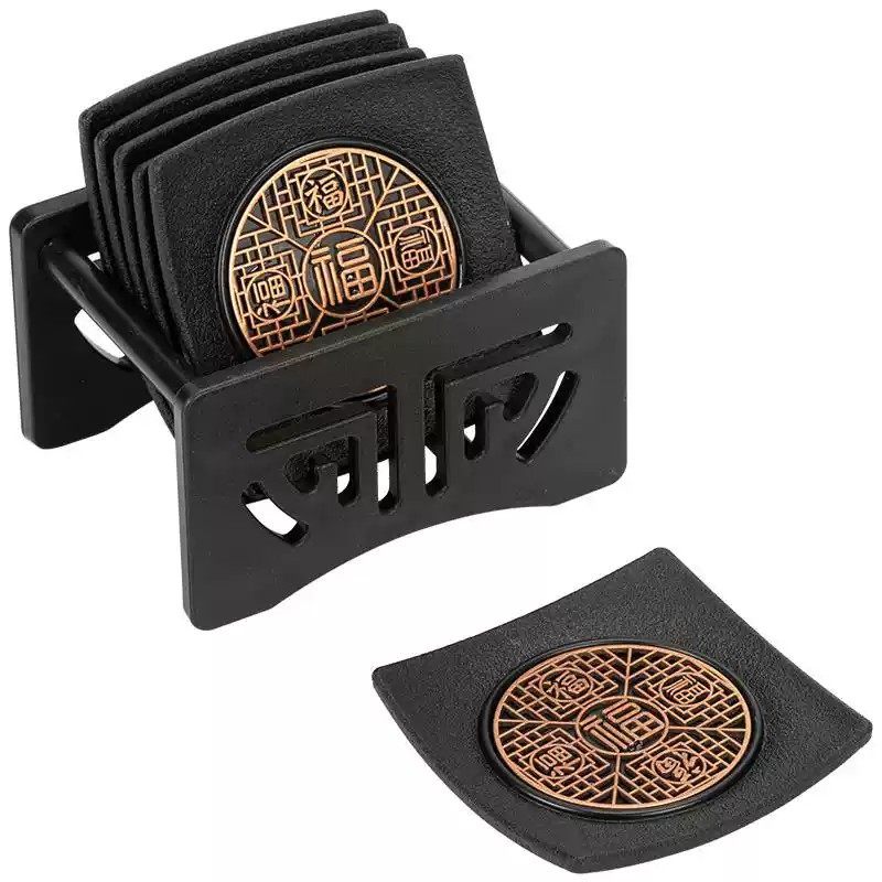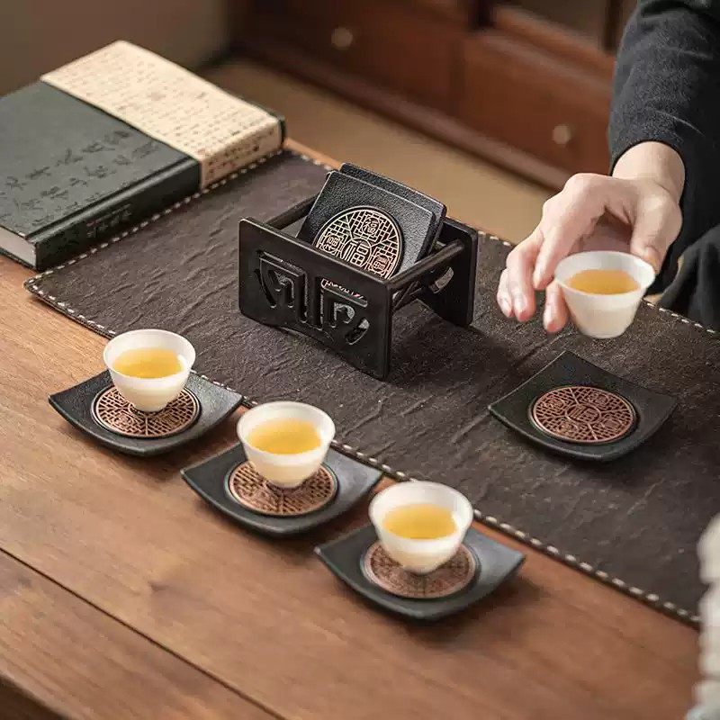 中式杯垫四方茶杯托家用翘边茶桌隔热垫收纳装防烫办公室方形家居