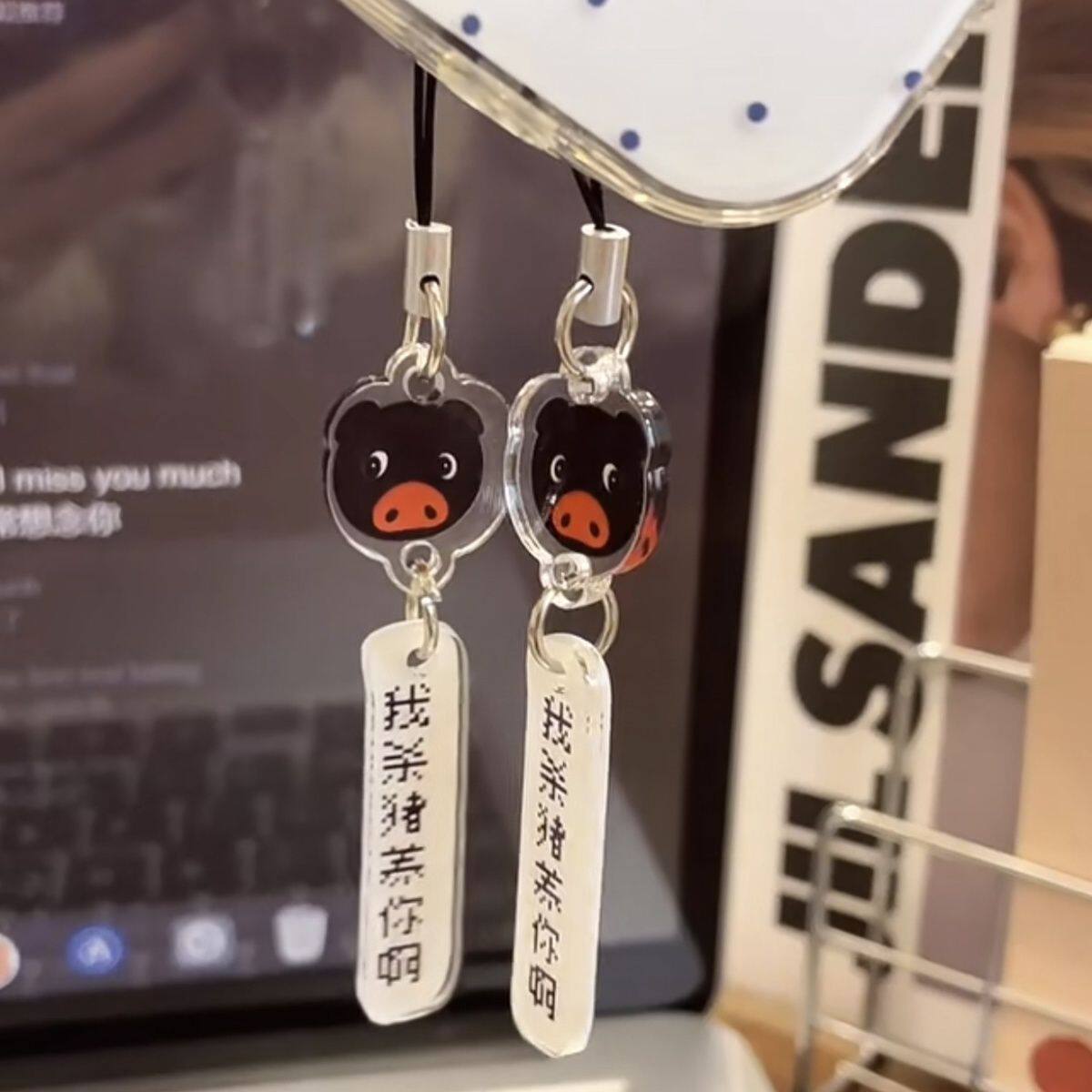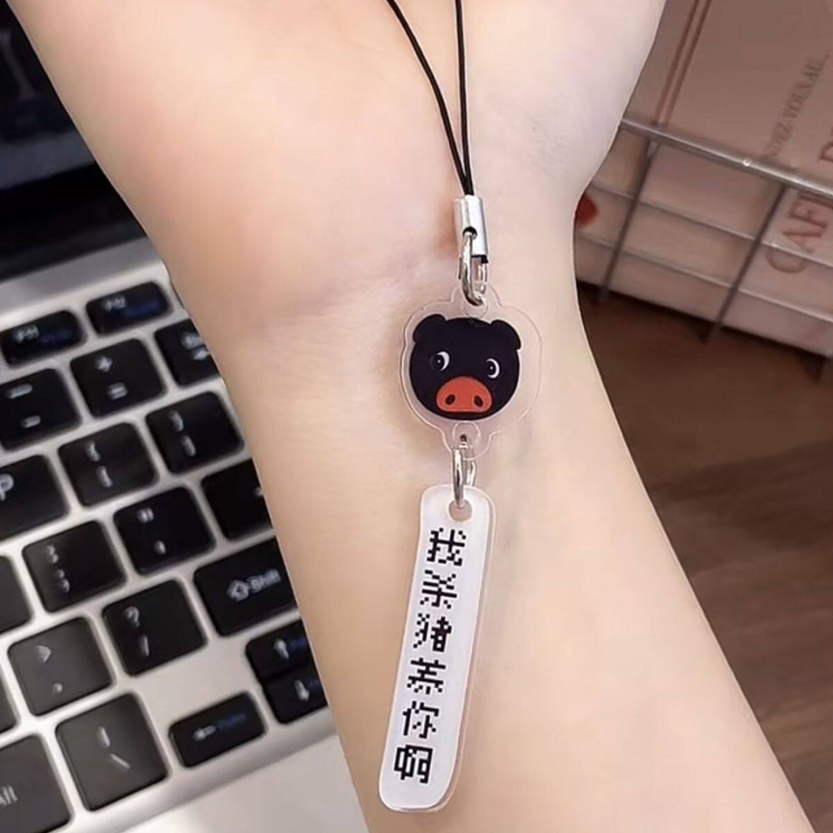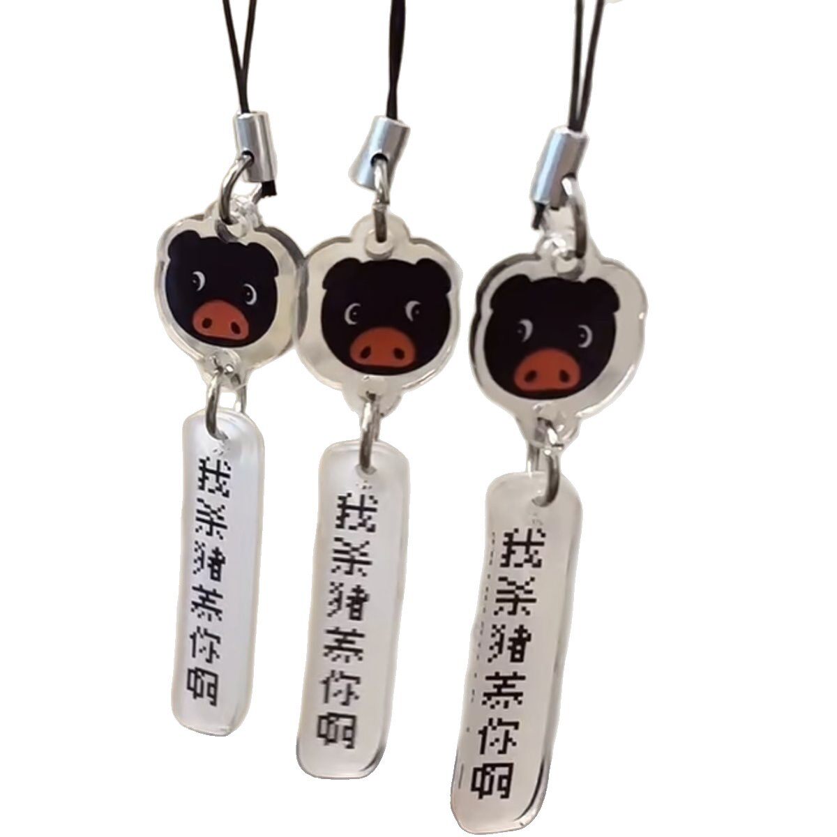 抖音同款逐玉我杀猪养你啊钥匙扣搞怪台词小黑猪挂件学生书包挂饰