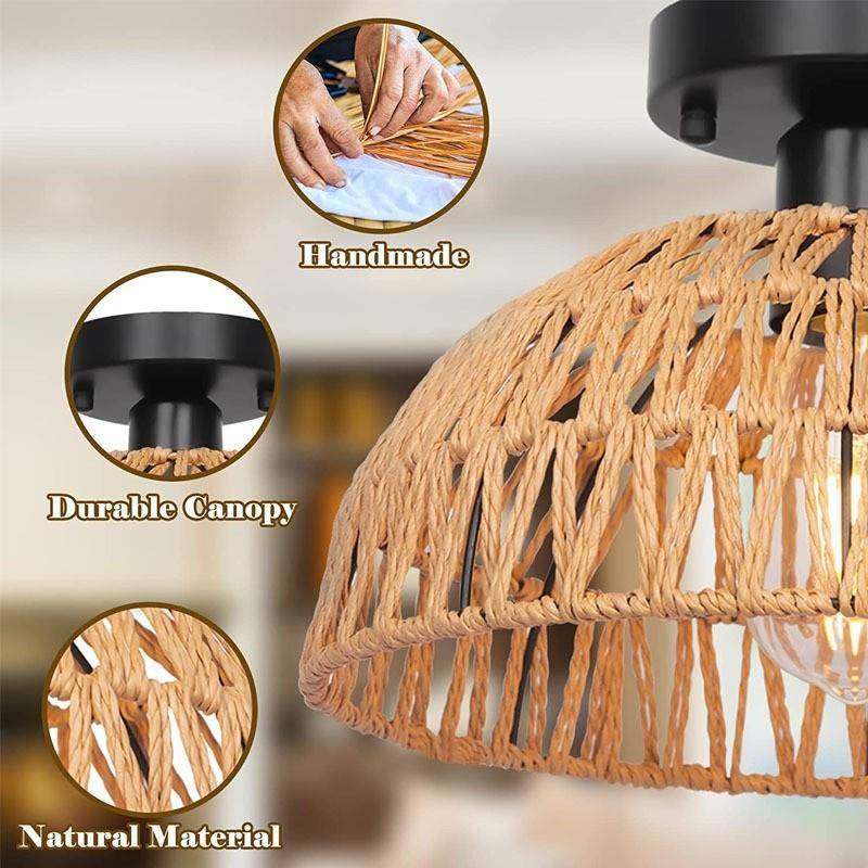 藤制吊灯波西米亚风格的吊灯篮子编织的圆顶厨房岛客厅餐厅吸顶灯