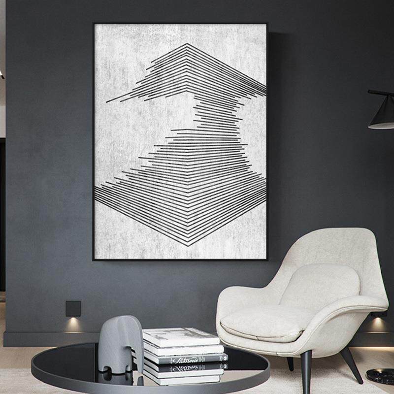 玄关装饰画竖版现代简约墙面壁画床头画黑白抽象线条过道走廊挂画